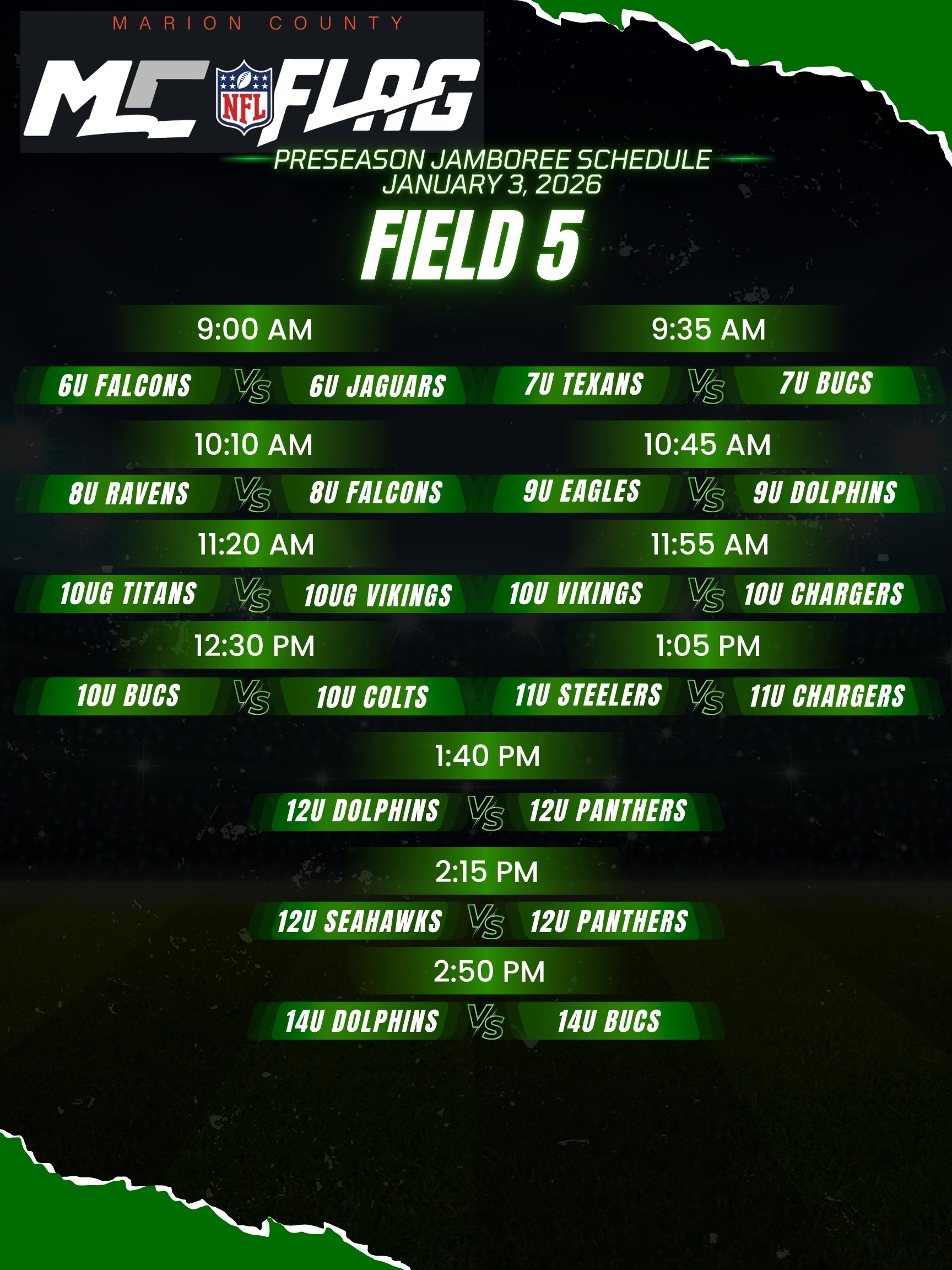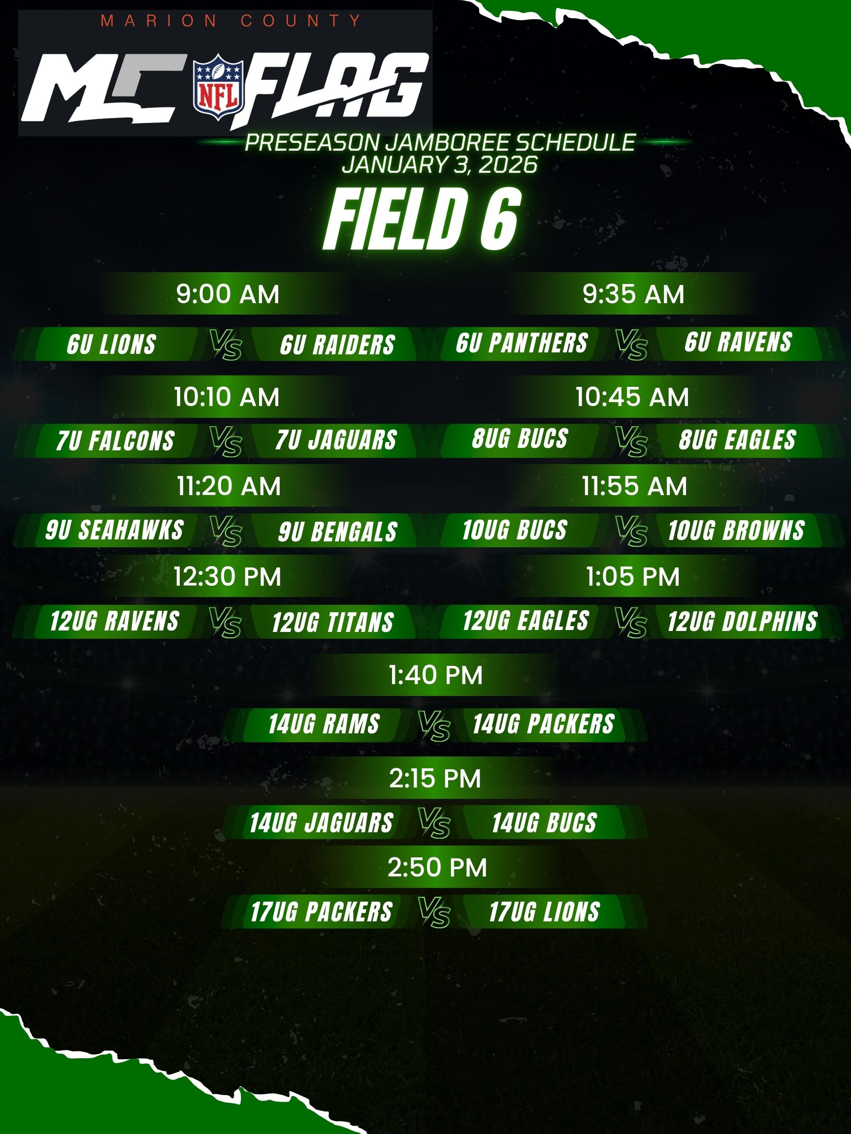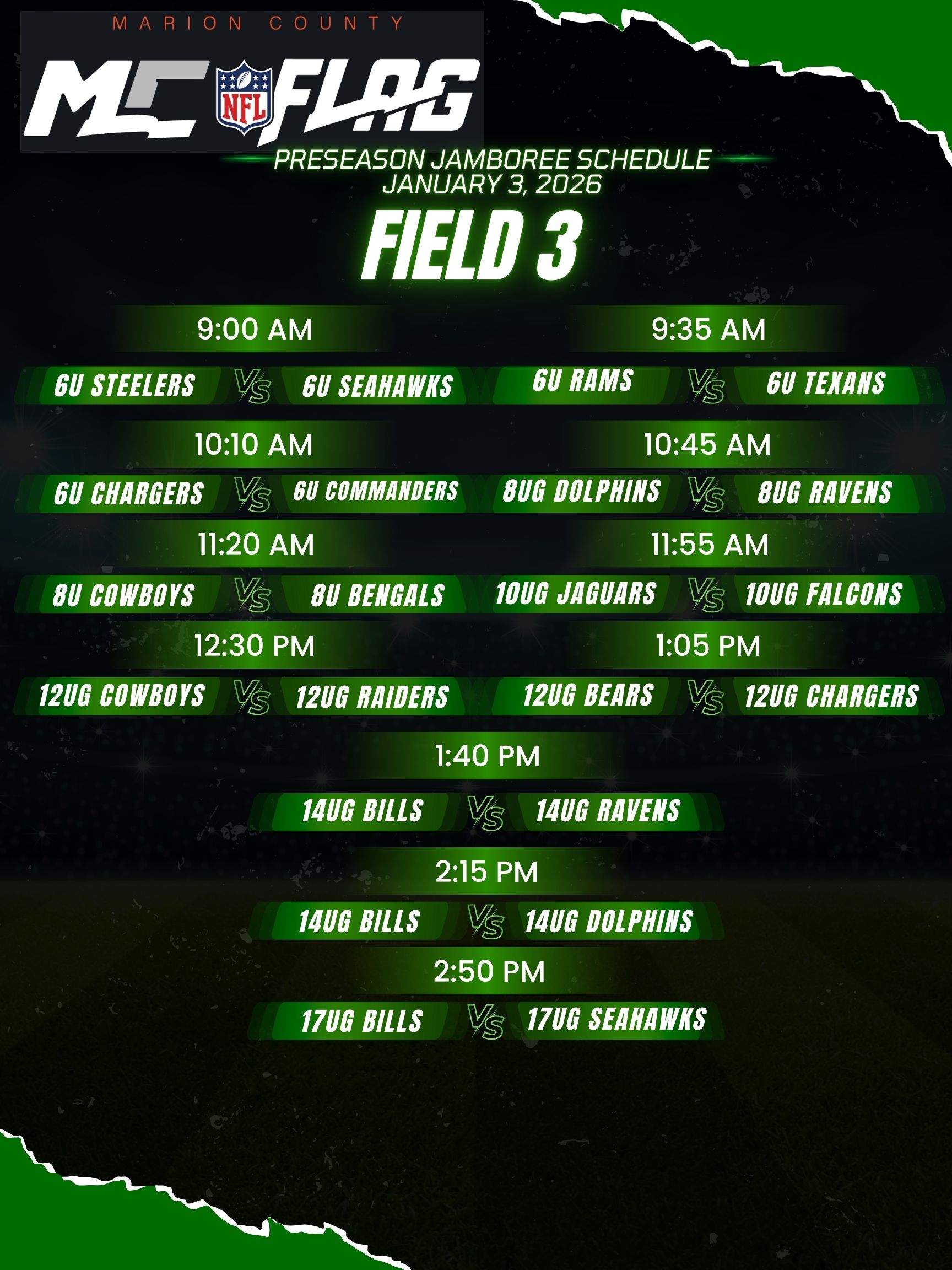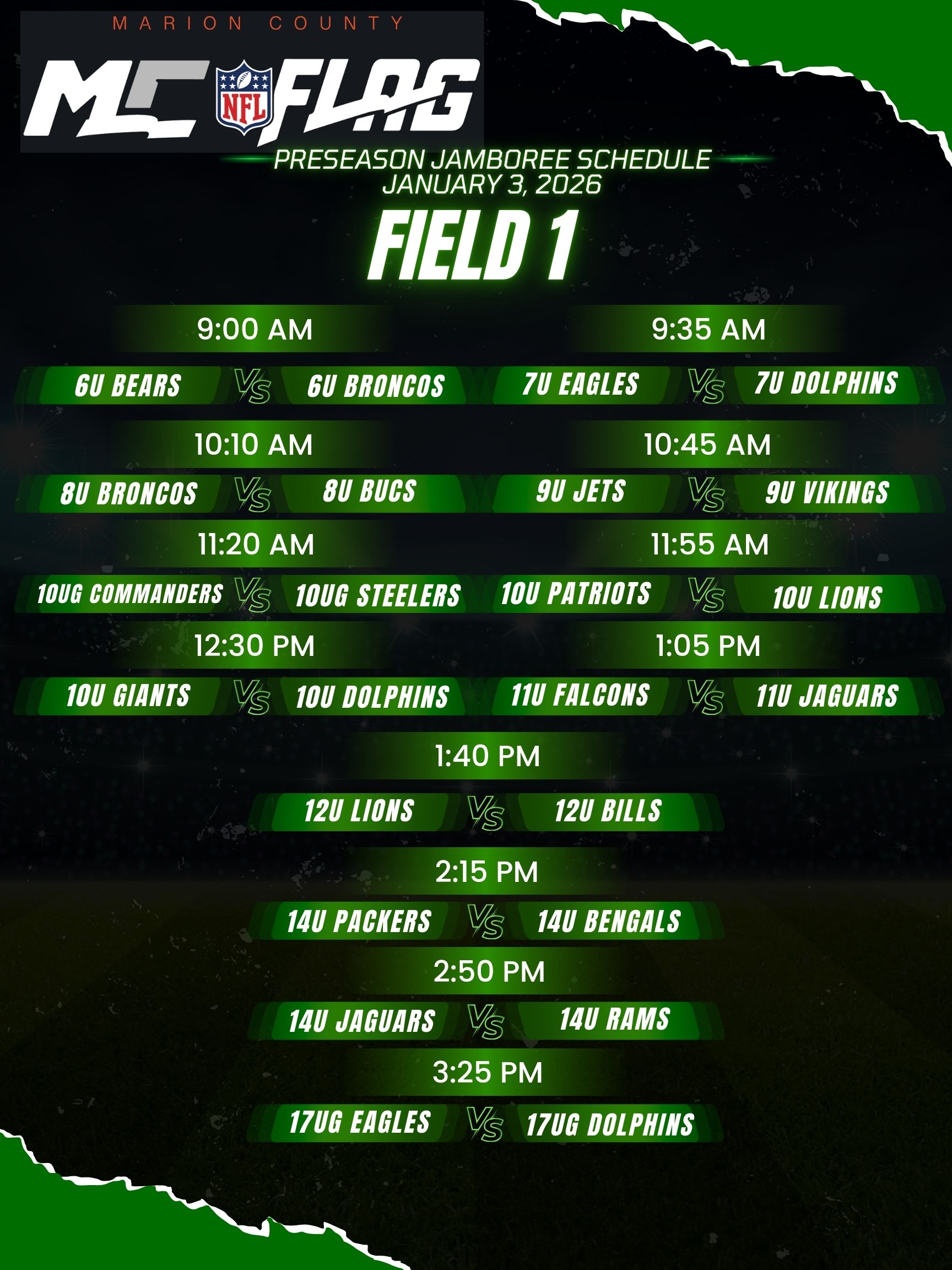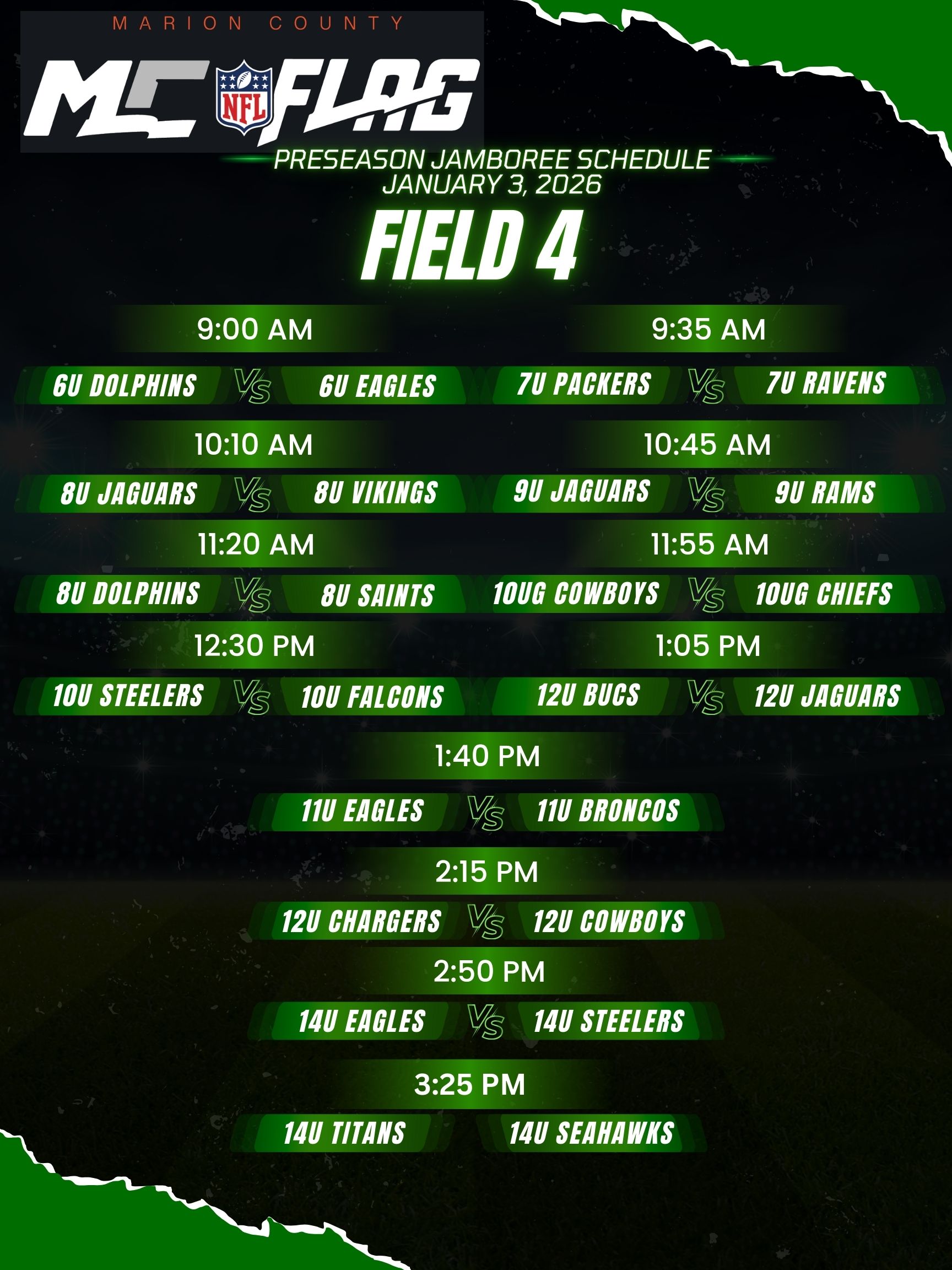 Preseason Jamboree is Scheduled for January 3, 2026Each team plays 1 half (24 minutes)GATES OPEN AT 8:15 am